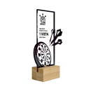 Medžiagos: ąžuolas, organinis stiklas, UV spauda