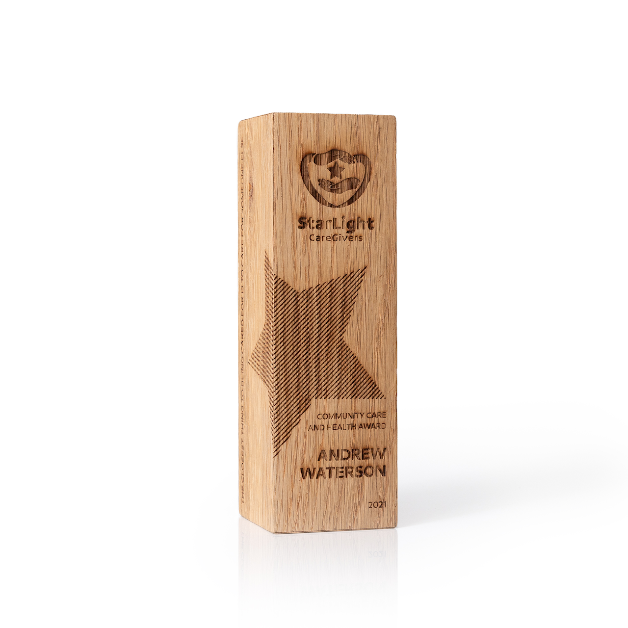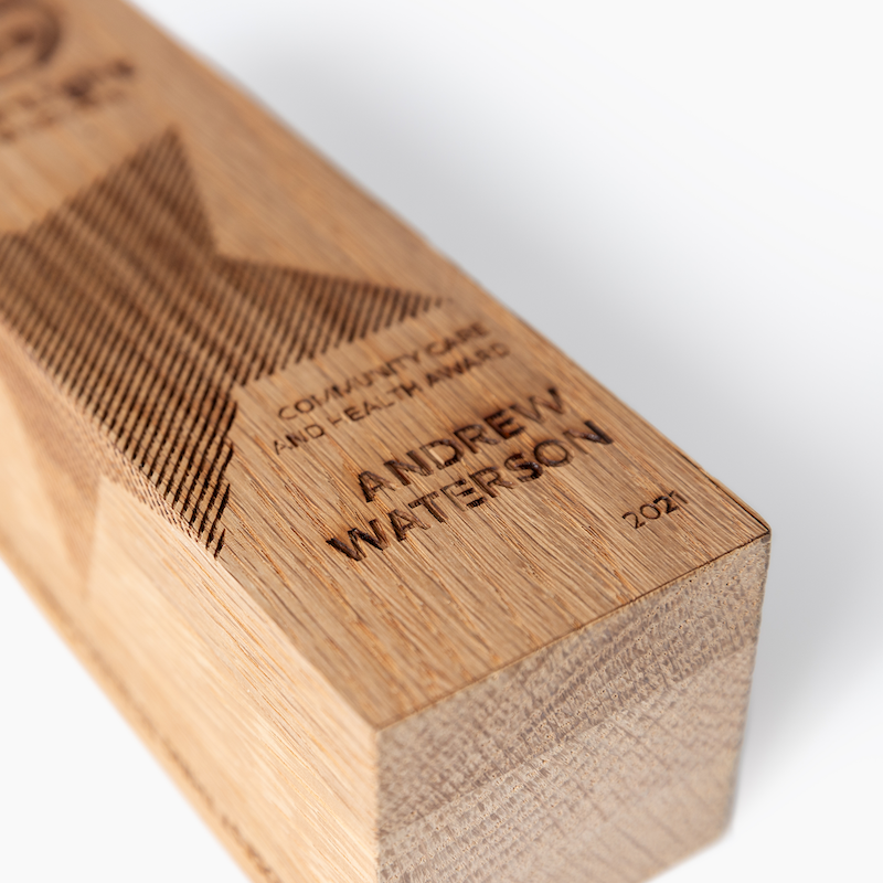 Pagrindinė kolekcijos idėja – pabrėžti Jūsų individualumą ir išskirtinumą natūraliose ir ilgaamžiškose medžiagose. Graviruotas medinis apdovanojimas